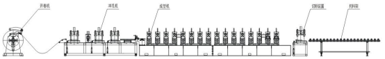 開卷機——入料導(dǎo)正——輥壓成型機——液壓切斷機——托料架